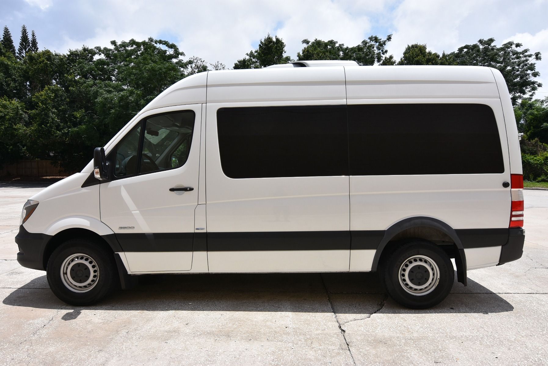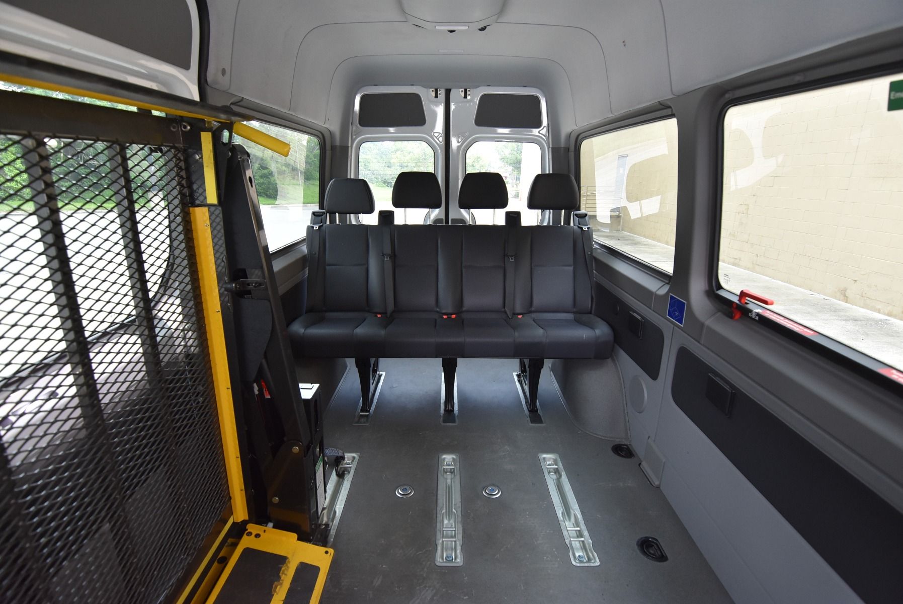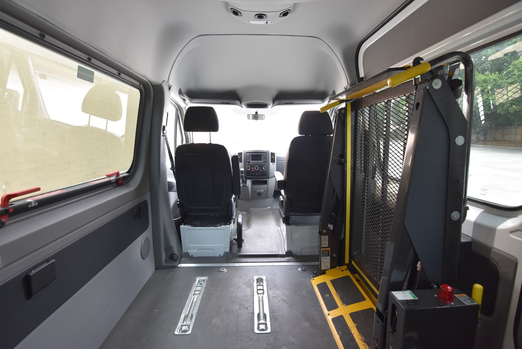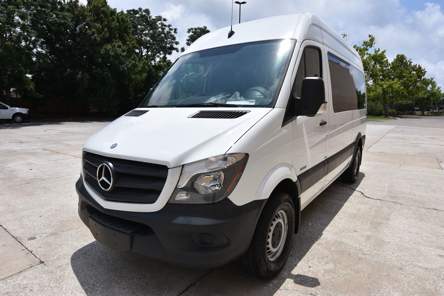 This 2015 Mercedes-Benz Sprinter 2500 is in excellent condition with: Remote Entry Raised Side Doors Interior Switches/Controls Raised Roof Wheelchair Restraint System Dual Front Air Bags Tilt Wheel AM/FM Stereo Keyless Entry Privacy Glass Cruise Control Rear Air ABS (4-Wheel) Alloy Wheels Power Door Locks Warranty Power Steering Power Windows Air Conditioning