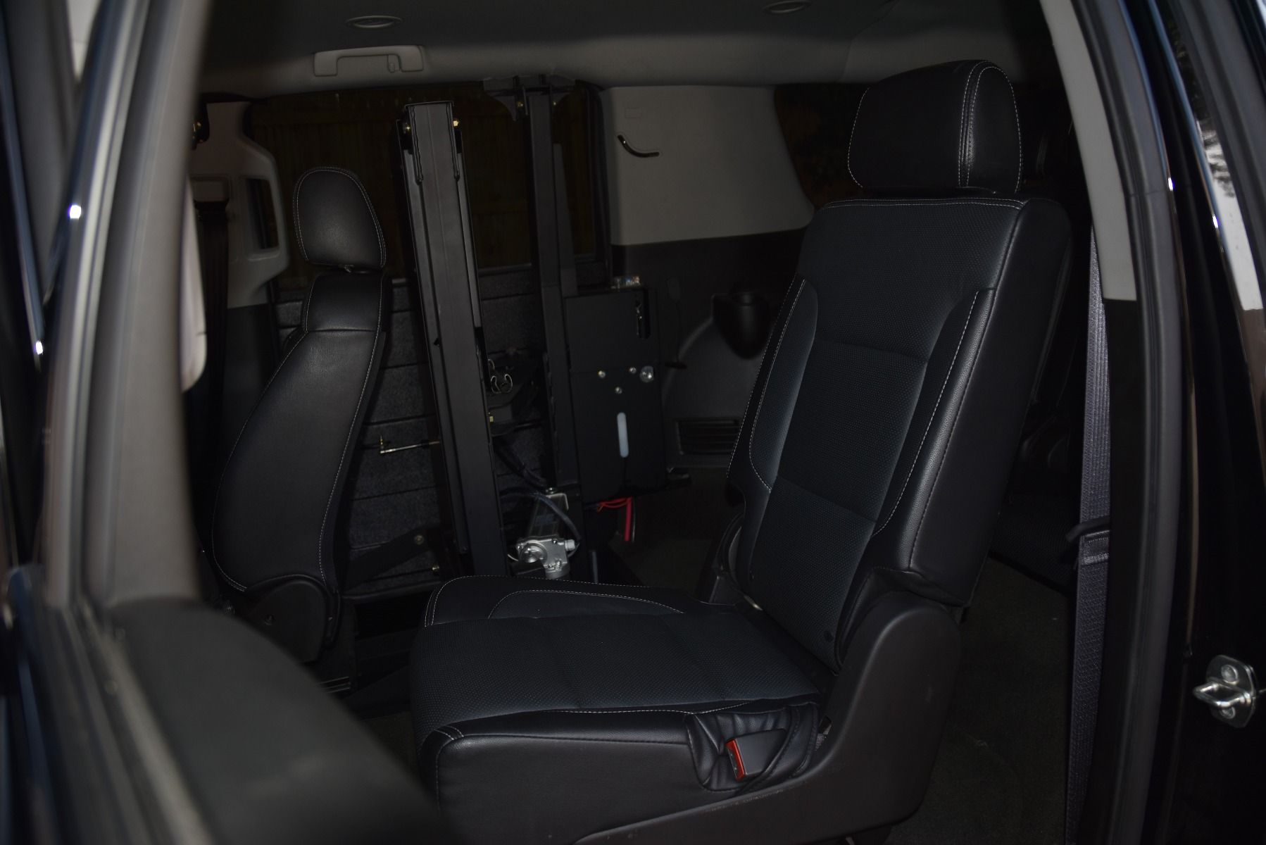 You’re viewing a 2016 GMC YUKON XL in Onyx Black. This pre-owned GMC wheelchair accessible truck is equipped with a Ryno wheelchair truck conversion. The Ryno truck wheelchair conversion features the Ryno RSL-100 Interior Lift installed on the passenger side. When deployed, both doors will open automatically, the lift will lower to the ground and is ready to load a wheelchair passenger into the vehicle. These wheelchair accessible suvs are popular, so don't hesitate to contact us to learn more.